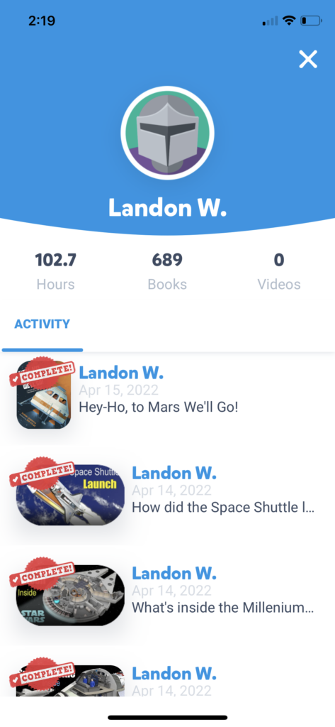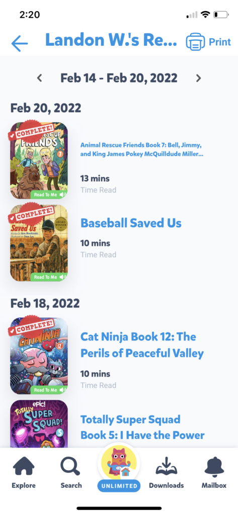 In addition to the 100 hours read on Epic, Landon also read a variety of library books, picture books, and chapter books. Here are a few: