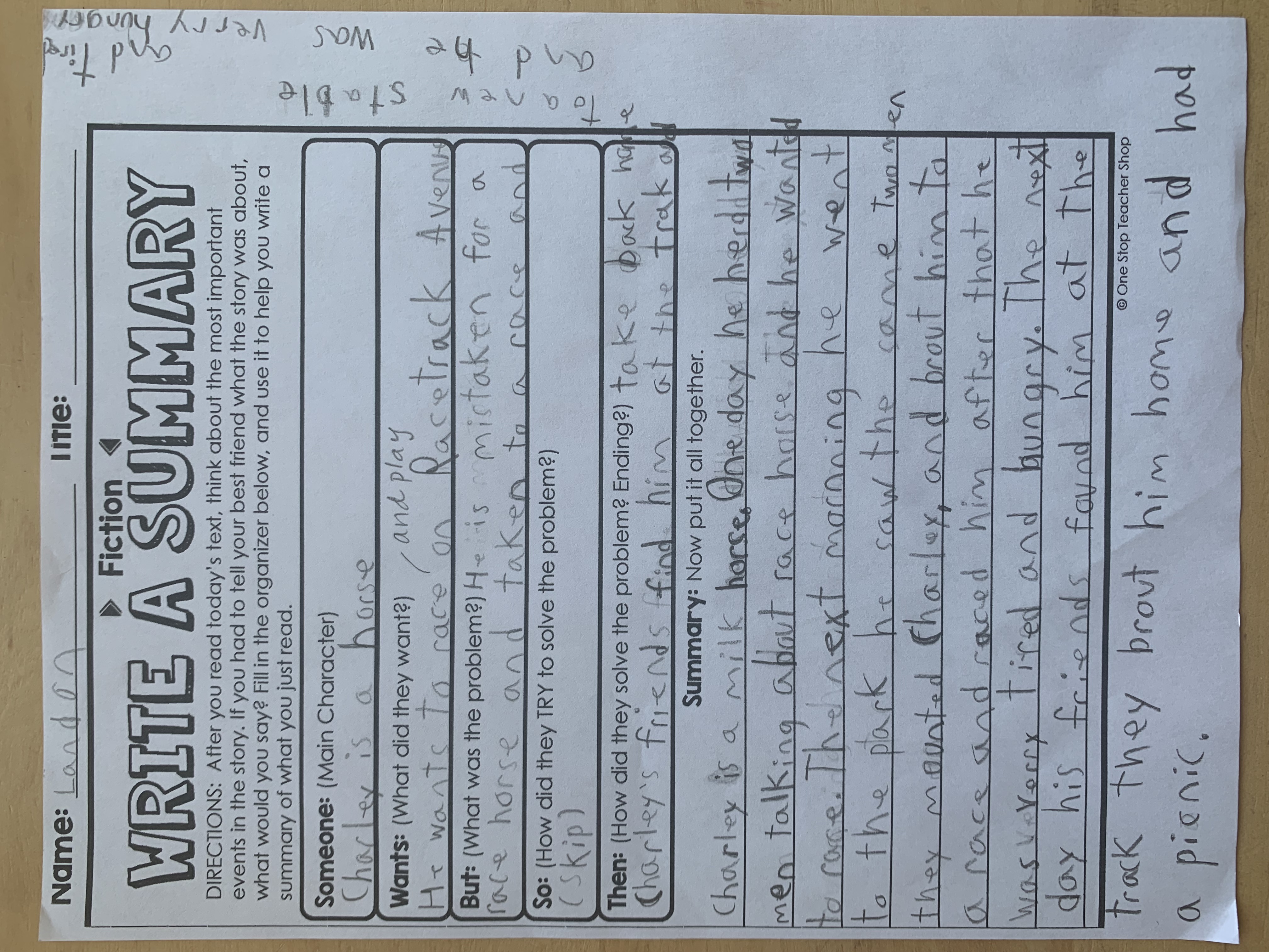 Landon meets weekly online with a small group of kids and a facilitator to support literacy skills, phonics, and fluency. The class meets for one hour to read a book, decode words, learn new vocabulary and answer comprehension questions. Here are a few highlights: