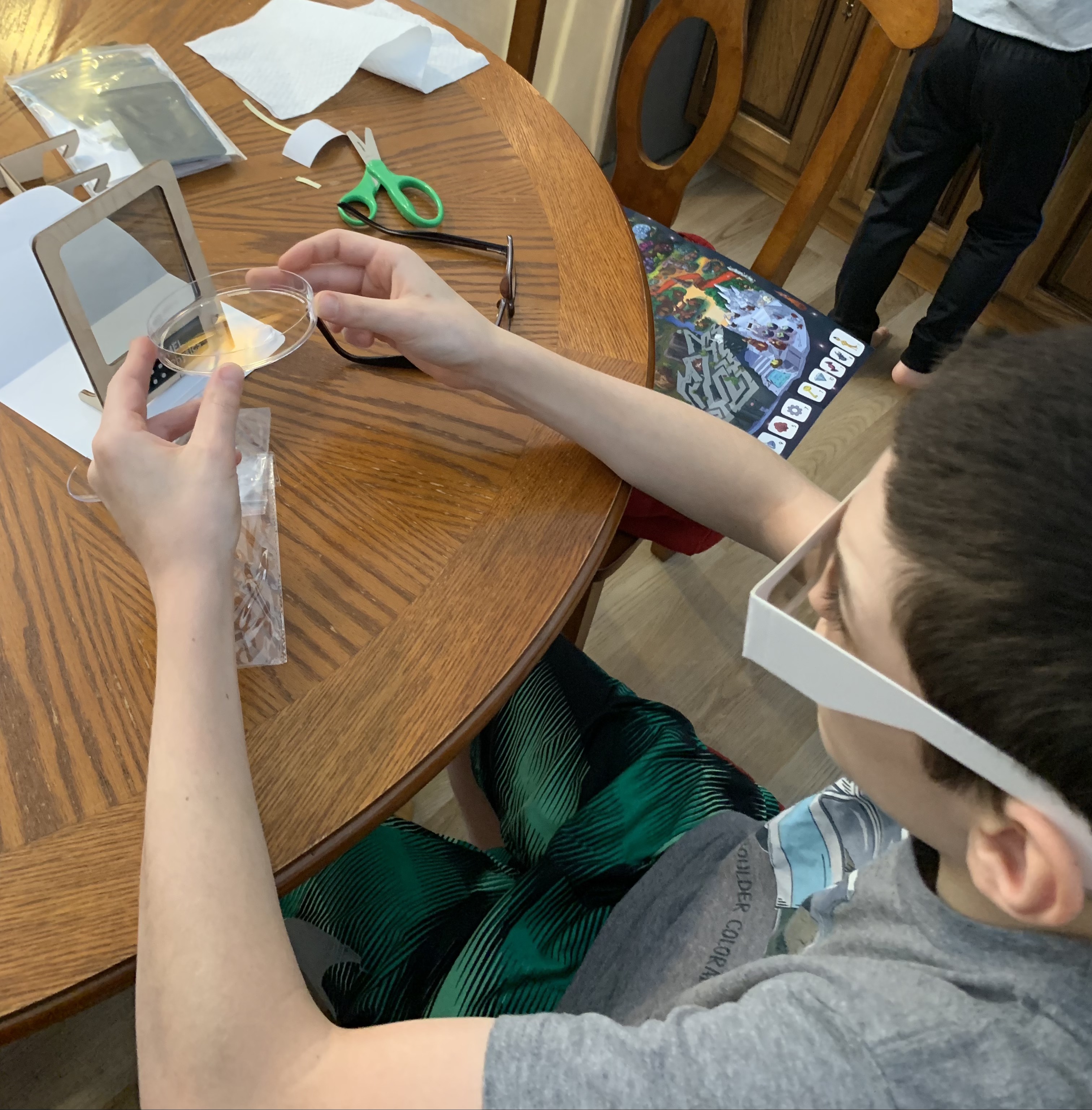 Landon participated in weekly science club sessions online with kids from all over the world, led by a knowledgeable facilitator. Some topics covered this year were forensics, water study, aliens, geology (earthquakes and volcanoes), “What is life?”, and many more.