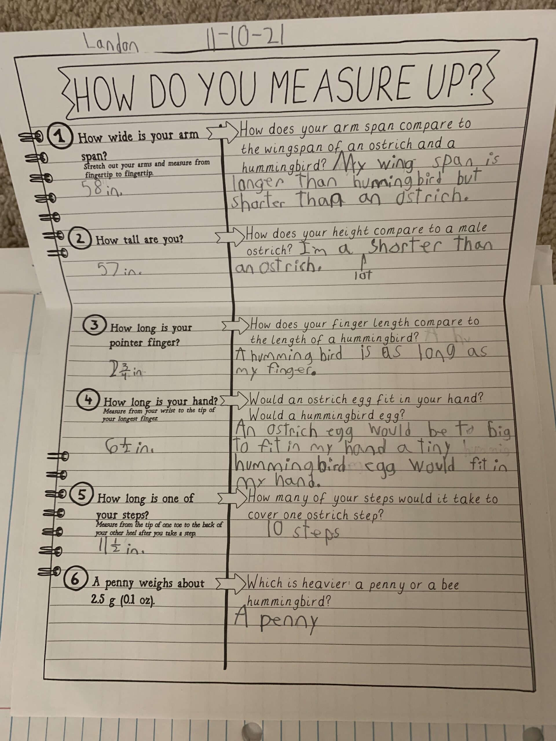 SCAMPER – Creative Thinking Activity – Given a set of parameters and conditions, Landon created a new bird species called the Dragon Bird.