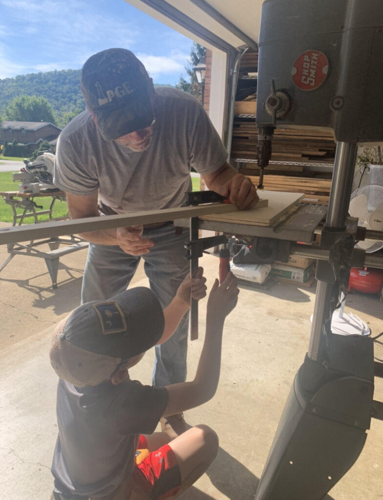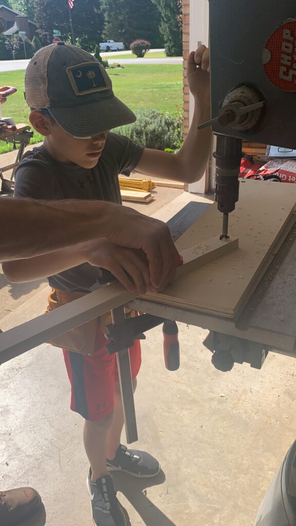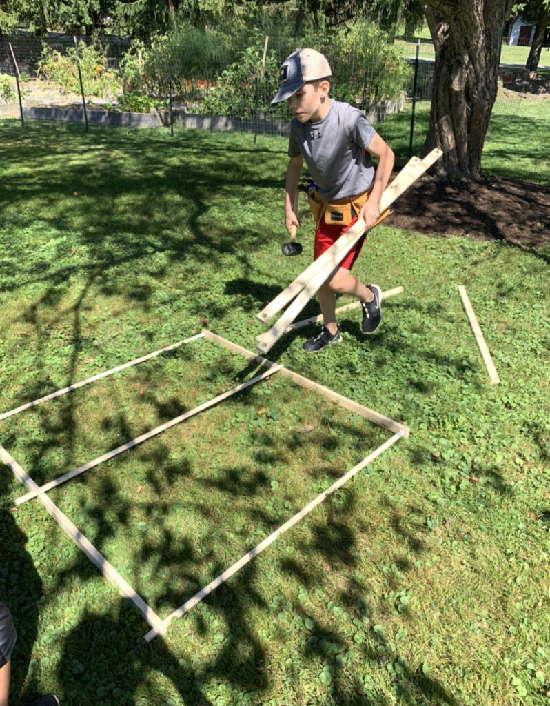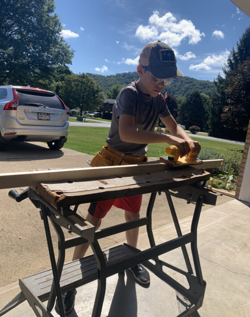 Landon was introduced to woodworking and built a teepee frame (progression shown in pictures below) using a table saw, sander, and other woodworking tools. These lessons really reinforced safety skills, math concepts, concentration, and technical skills.
