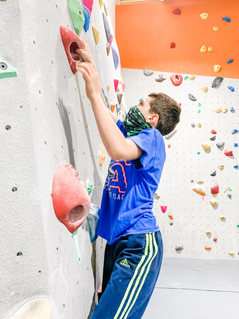 To keep active during the cooler months, we spend a lot of time at the YMCA and also tried out bouldering to add variety. The staff at the indoor facility we use helped teach Landon the basics and encouraged growth through small challenges.