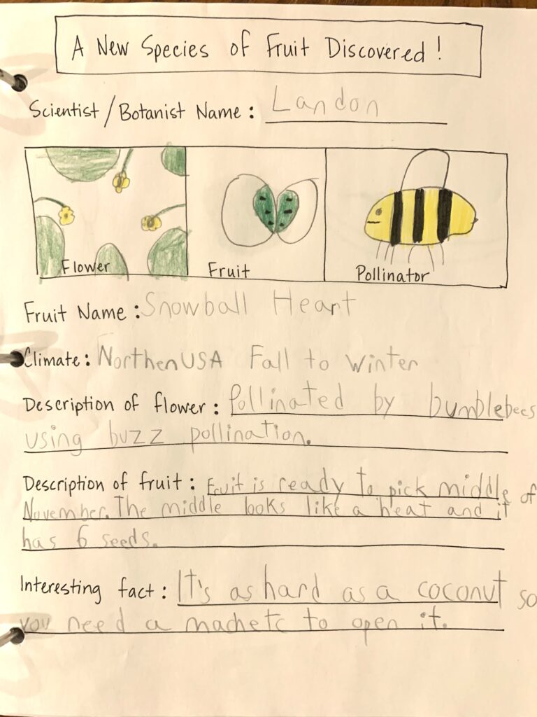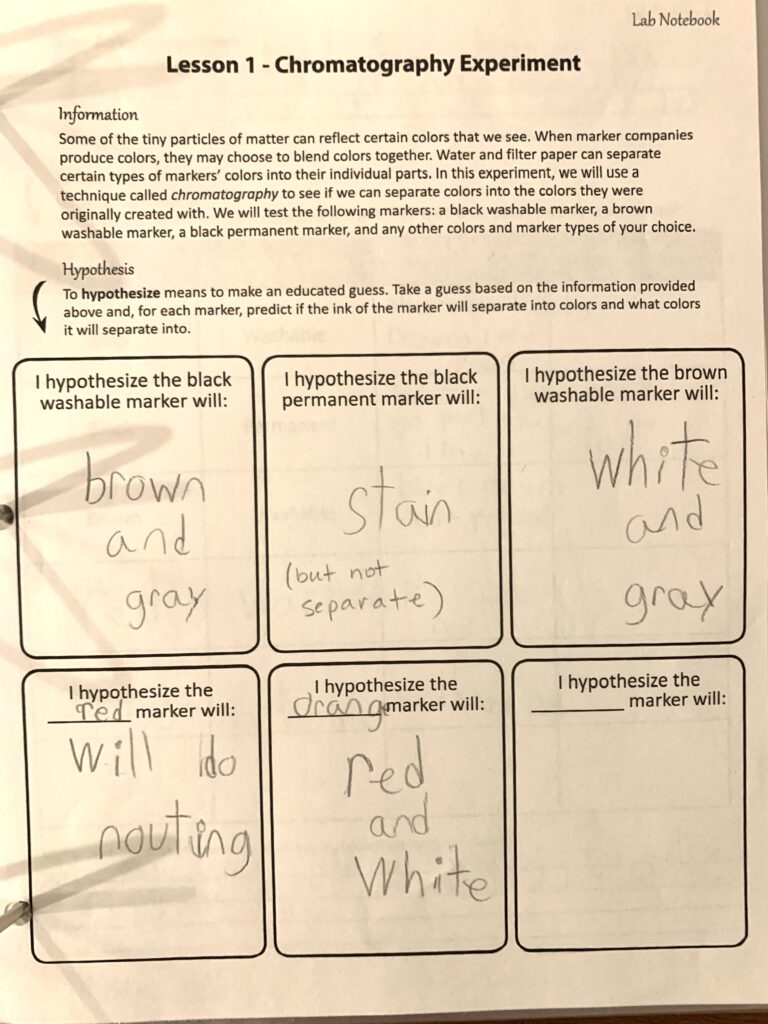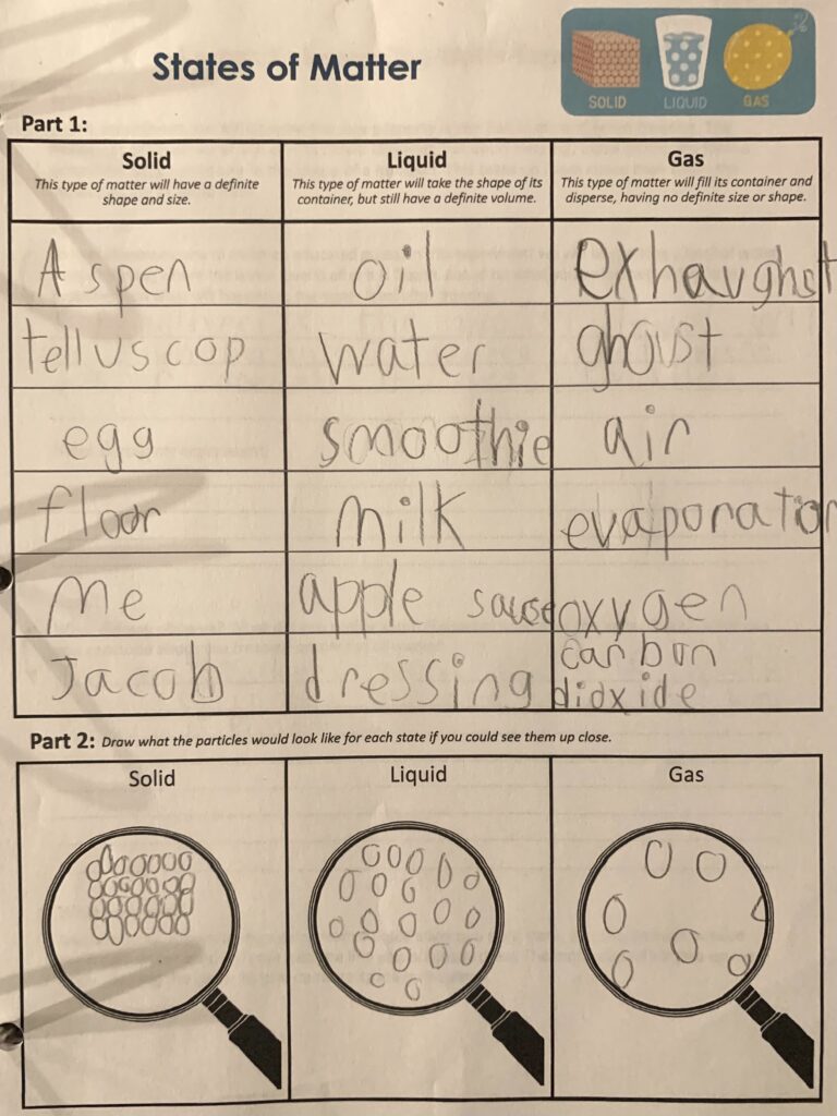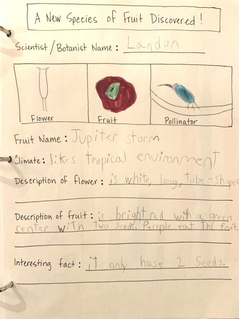 The following examples are taken from Landon’s science binder to showcase continued growth and learning.